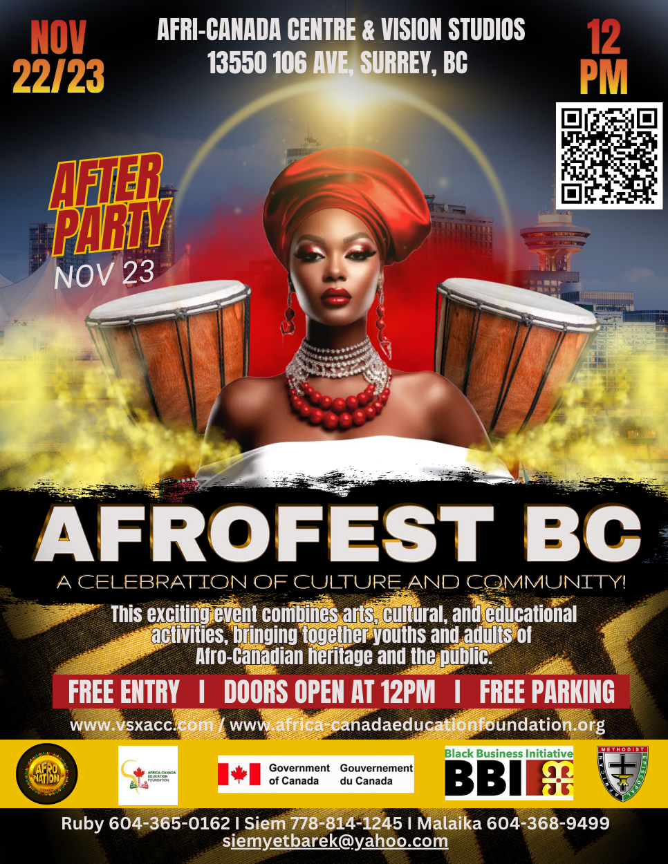 Celebrate and share the rich and diverse heritage of Afro-Canadian culture at Afro-Fest'24! This exciting event combines arts, cultural, and educational activities, bringing together youths and adults of Afro-Canadian heritage and the public.